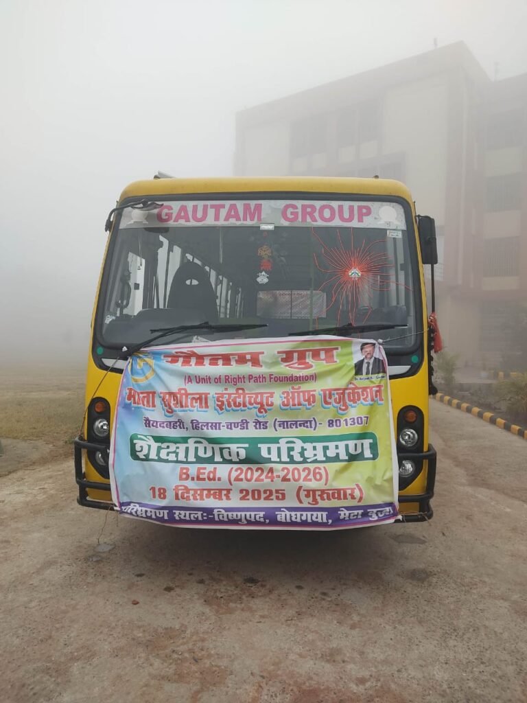 बिहारशरीफ (अपना नालंदा)।माता सुशीला इंस्टीट्यूट ऑफ एजुकेशन, हिलसा सैयद बरही के सत्र B.Ed. 2024–26 के प्रशिक्षुओं को शैक्षणिक भ्रमण के लिए गुरुवार को रवाना किया गया। संस्थान के प्राचार्य डॉ. विश्वमोहन कुमार ने हरी झंडी दिखाकर बस को प्रस्थान कराया।