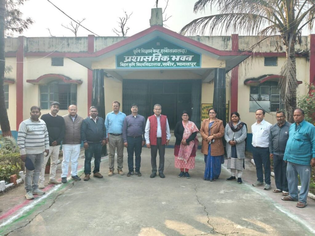 हरनौत (अपना नालंदा)। स्थानीय बाजार स्थित कृषि विज्ञान केंद्र (केवीके) हरनौत में मंगलवार को बिहार कृषि विश्वविद्यालय, सबौर के प्रसार शिक्षा निदेशक डॉ. एस.के. पाठक का दौरा हुआ। उन्होंने करीब साढ़े तीन घंटे तक केंद्र में रुककर कार्यालयों, प्रयोगशालाओं, परिसर में स्थापित विभिन्न डेमो यूनिट तथा खेतों में लगी फसलों का निरीक्षण किया। इस दौरान उन्होंने वैज्ञानिकों के साथ बैठक कर केंद्र की गतिविधियों, उपलब्ध संसाधनों तथा किसानों के लिए संचालित कार्यक्रमों की विस्तृत समीक्षा की।