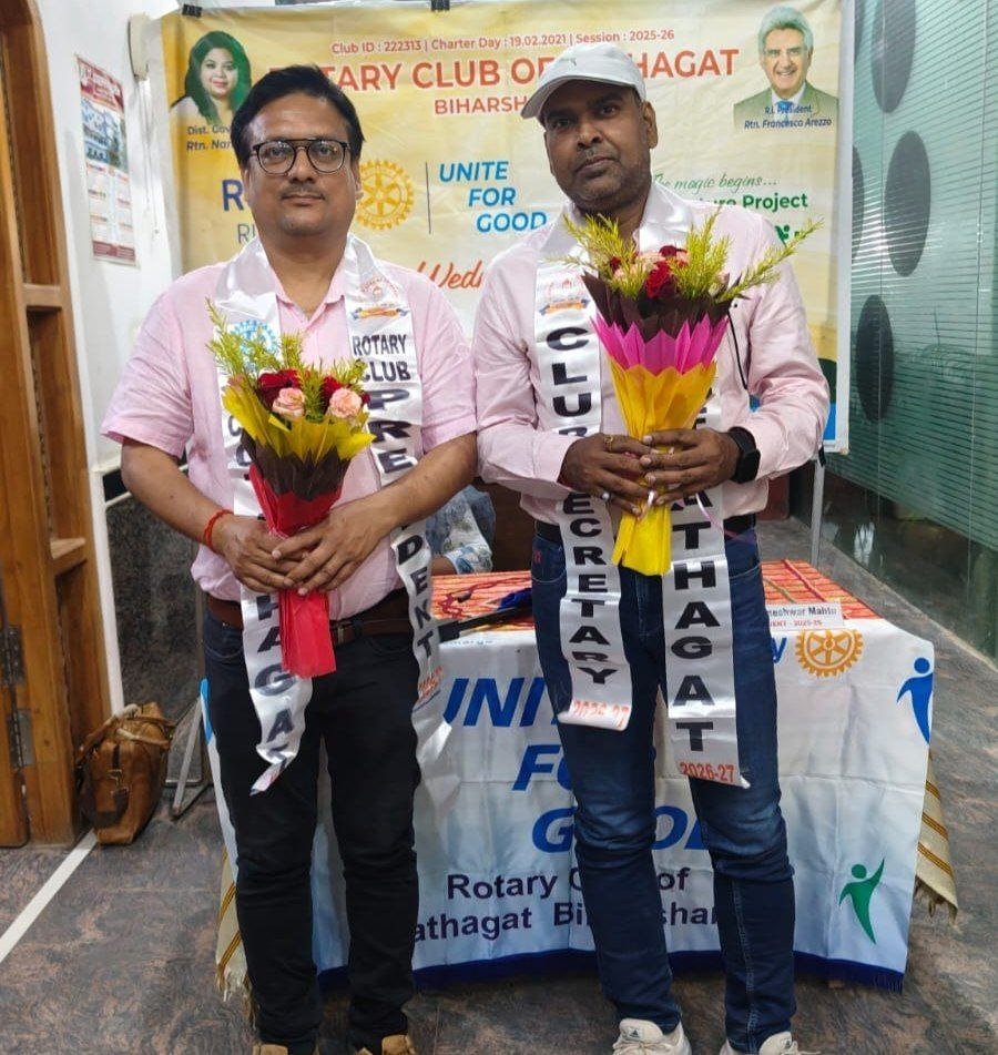 बिहारशरीफ (अपना नालंदा)। रोटरी क्लब तथागत, बिहारशरीफ में सत्र 2026-27 के लिए नई कार्यकारिणी का चयन सर्वसम्मति से किया गया। इस अवसर पर क्लब के सदस्यों के बीच उत्साह का माहौल देखा गया और नव-चयनित पदाधिकारियों को बधाई एवं शुभकामनाएँ दी गईं।