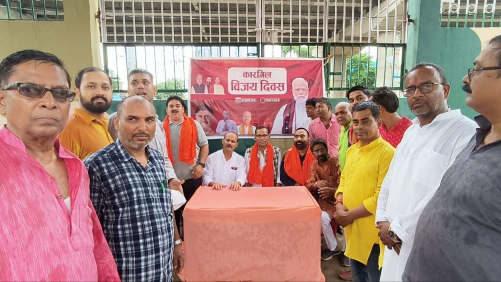 बिहारशरीफ(अपना नालंदा)। कारगिल विजय दिवस के अवसर पर शनिवार को भारतीय जनता पार्टी, नालंदा जिला इकाई द्वारा कारगिल पार्क, बिहारशरीफ स्थित शहीद स्मारक पर वीर शहीदों को श्रद्धांजलि अर्पित की गई। कार्यक्रम का नेतृत्व भाजपा नालंदा जिला अध्यक्ष राजेश कुमार ने किया।