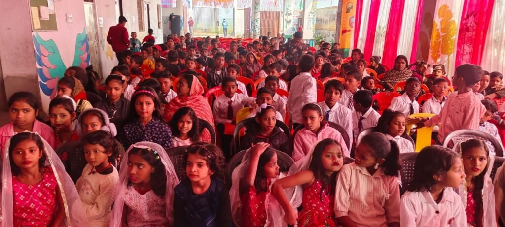 दीप प्रज्वलन के पश्चात विद्यालय के नन्हे-मुन्ने विद्यार्थियों ने स्वागत गीत प्रस्तुत कर सभी अतिथियों का अभिनंदन किया। बच्चों की मधुर आवाज और तालबद्ध प्रस्तुतियों ने पूरे वातावरण को उत्सवमय बना दिया। जैसे ही मुख्य अतिथि मंच पर पहुंचे, तालियों की गड़गड़ाहट और विद्यार्थियों के उत्साह से विद्यालय प्रांगण गूंज उठा।