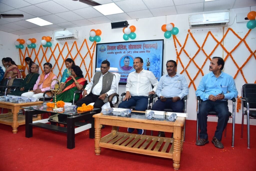 बिहारशरीफ(अपना नालंदा)। नालंदा स्थित किसान कॉलेज, सोहसराय में मंगलवार को कुलपति प्रो. उपेंद्र प्रसाद सिंह के सम्मान में भव्य स्वागत समारोह का आयोजन किया गया। कार्यक्रम की अध्यक्षता महाविद्यालय के प्राचार्य प्रो.(डॉ.) दिबांशु कुमार ने की।